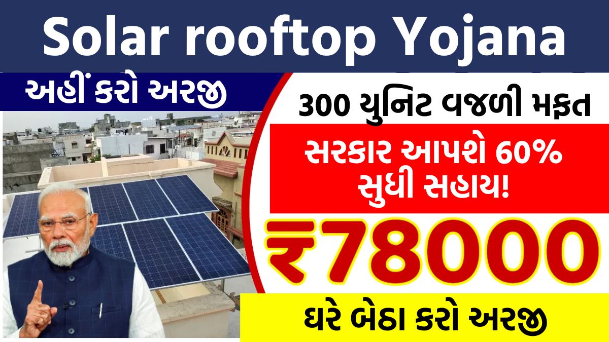 Solar rooftop Yojana: સોલાર પેનલ થી નો માત્ર ગુજરાતમાં પરંતુ આખા ભારતમાં વિજક્ષેત્રે ક્રાંતિકારી બદલાવા આવ્યો છે. સોલાર પેનલ થી પર્યાવરણ અને પ્રકૃતિનો સાથ મેળવી વીજળી ઉત્પન્ન થાય છે જળવાઈ રહે છે ખાસ કરી અને ગામડાઓમાં જ વીજળીની સમસ્યાઓનો સામનો કરતા લોકો માટે આ એક વરદાન સમાન છે solar rooftop Yojana સરકાર દ્વારા કરવામાં આવતી અને લોકોને સોલાર પેનલ લગાવવા માટે પ્રોત્સાહન યોજના છે જેનો હેતુ પૂરી વિજળી આપવાનો અને વીજળીના બિલ થી રાહત આપવાનો છે